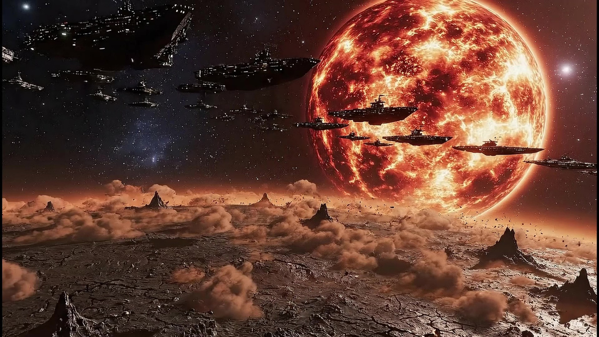 Планета Некрос умирала. Её солнце, некогда яркое и золотое, теперь раздулось до болезненно-багрового гиганта, пожирающего горизонт. Небосвод дрожал от сирен орбитальной бомбардировки — флот Империи Пустоты начал зачистку сектора. Каэл, молодой послушник Ордена Хранителей Света, стоял у огромных ворот Родового Склепа. Его руки дрожали, пальцы лихорадочно бегали по голографической панели управления. — Я почти закончил! — крикнул он сквозь рев сирен. — Протоколы консервации запущены. Я смогу сохранить матрицы памяти моего отца и предков. Они переживут бомбардировку! За его спиной, спокойный, как скала среди бушующего океана, стоял Мастер Элиан. Его плащ трепал горячий ветер, но рука твердо лежала на рукояти плазменного клинка. Он не смотрел на Склеп. Он смотрел на космопорт вдали, где последний эвакуационный транспорт пытался взлететь, но его двигатели сбоили. — Каэл, — голос Мастера прозвучал не громко, но отчетливо перекрыл грохот взрывов. — Нам нужно уходить. Транспорт «Ковчег-4» перег