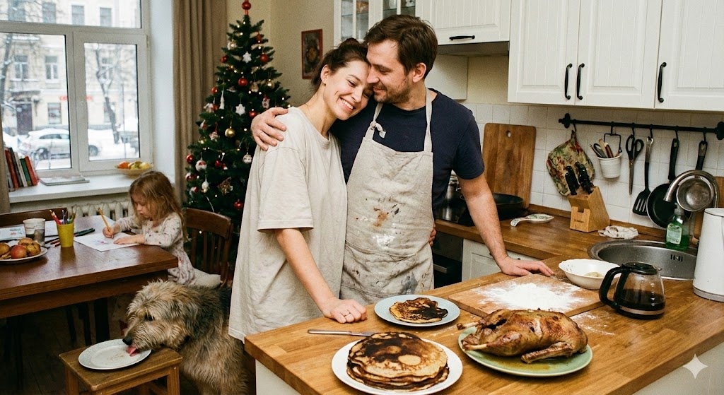 — Но это же Рождество, Артемушка, — я опустила тяжелую сумку на пол. Запах гуся предательски вырвался наружу, заполняя их стерильно-бежевый коридор ароматом чеснока и яблок. — Какой кейтеринг? Я двое суток его мариновала. И твой любимый оливье...