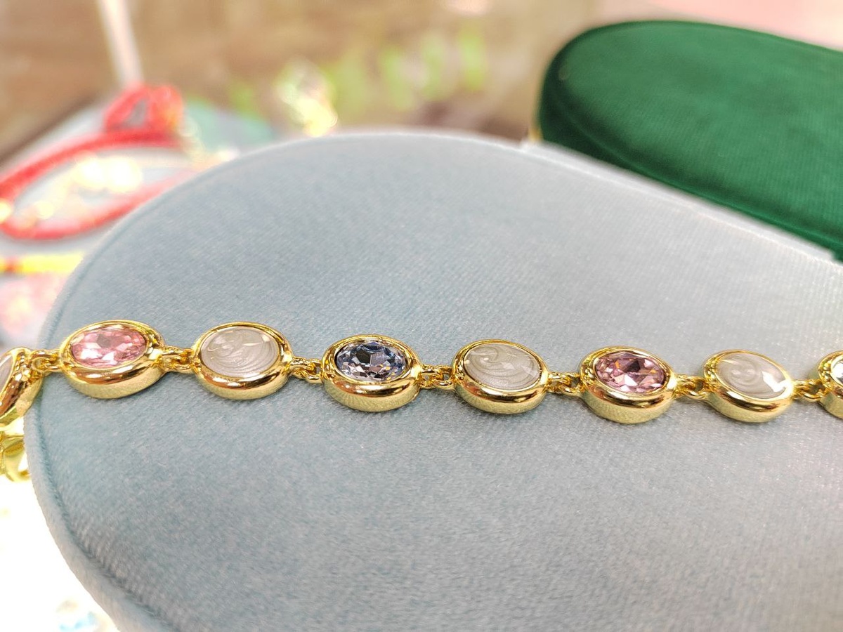 Нежный браслет с разноцветными стразами и эмалью