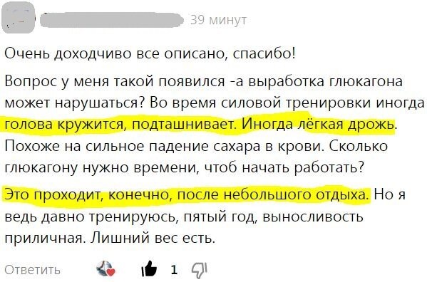 И организм по параметрам крови видит, что НЕ успевает восполнить глюкозу, и он вас останавливает.