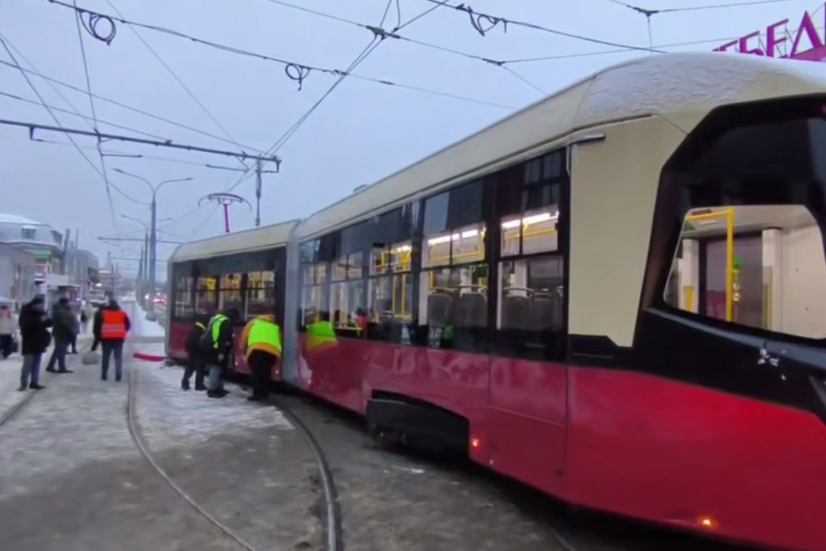 Трехсекционный трамвай сошел с рельсов в Нижнем Новгороде в день запуска
