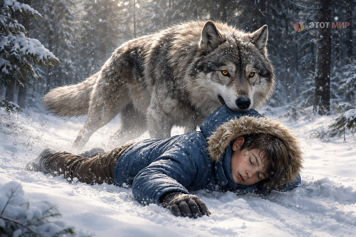 Во дворе, на крыльце, лежал Ваня. Бледный, без сознания. Его нога была изуродована капканом. Рядом, прижавшись боком, лежал волк. Он поднял голову, когда родители подбежали, и снова опустил её, будто знал — дальше они справятся сами.