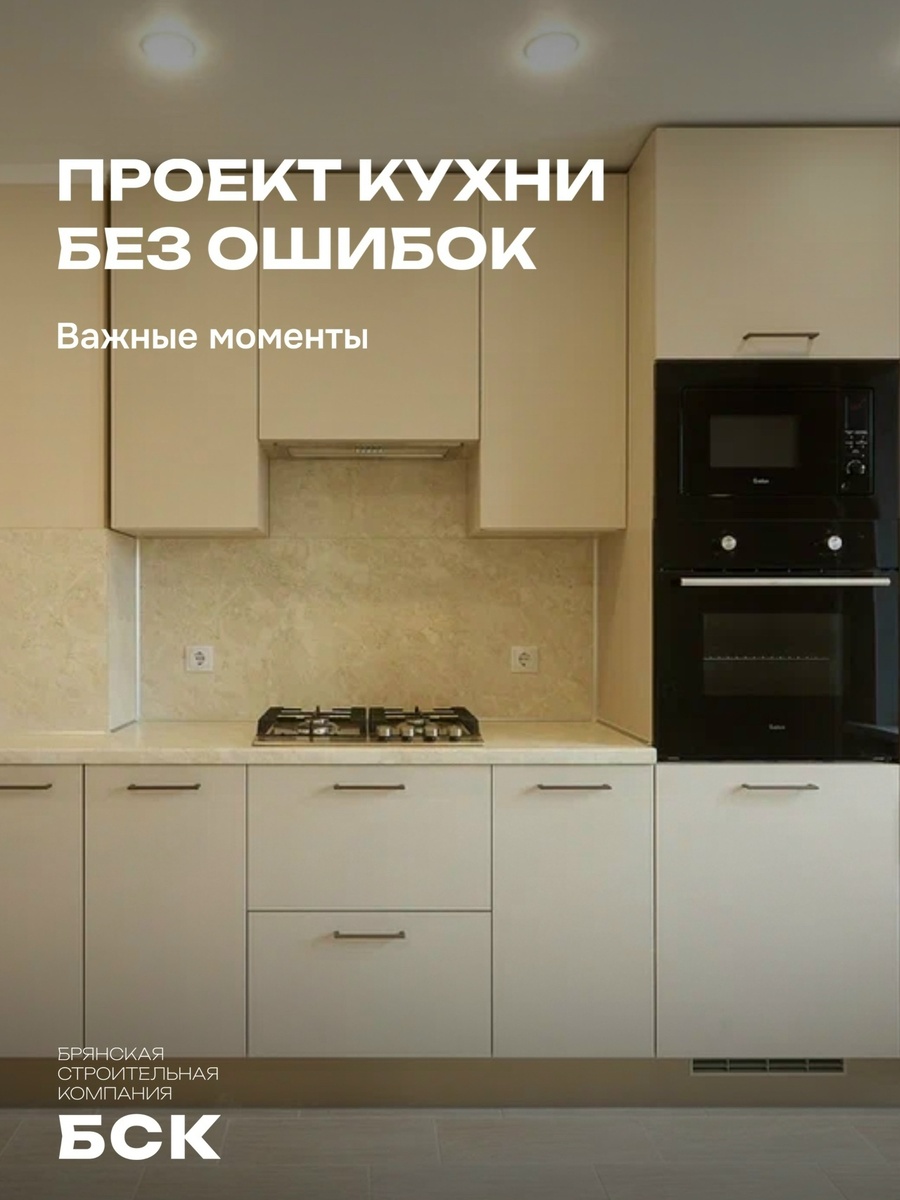 Как спланировать кухню без ошибок: важные моменты Кухня — это сердце квартиры, и именно здесь особенно важно продумать всё заранее. 5 ключевых правил планировки кухни: 1. Рабочий треугольник. Оптимизируйте расстояния между плитой, мойкой и холодильником. Основная рабочая зона (между мойкой и плитой) — минимум 60 см, идеально 90 см. Добавьте небольшие площадки (30-50 см) для продуктов, готовых блюд и техники. 2. Эргономика. Выбирайте высоту столешницы под рост (86-95 см). Размещайте духовку и СВЧ на уровне глаз в колонне, если позволяет пространство. 3. Электрика после проекта. Сначала создайте точный проект кухни, затем — схему электропроводки. Заранее предусмотрите минимум 5 розеток в фартуке для мелкой техники и отдельные точки для встраиваемых приборов. 4. Система хранения. Перед заказом гарнитура детально распишите, что и где будет храниться: от повседневных предметов до крупной техники. Оставьте резерв для будущих покупок. 5. Последовательность работ. Укладывайте плиточный