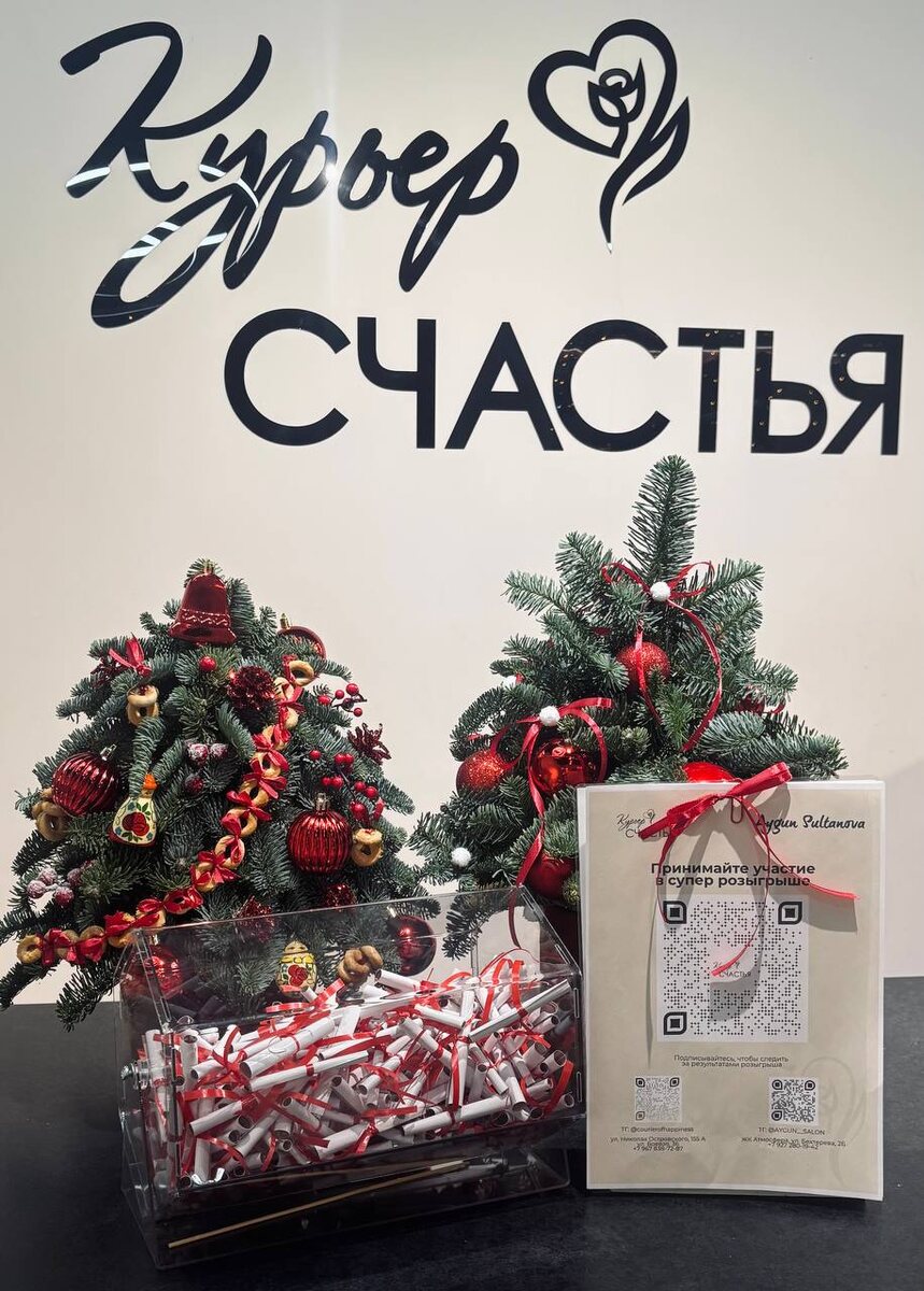 ! 🥳 Пусть победитель нашего онлайн-конкурса определился раньше срока, это не повод останавливаться. Тем более, что для астраханцев уже вовсю крутится «Колесо Счастья» — акция, где проиграть невозможно! Как же получить это счастье? 1. Совершите покупку в салоне. 2. Вытяните удачу в лототроне с волшебными записками. 3. Получите подарок на месте! А ещё — шанс на СУПЕРПРИЗ! 🎁 Оставьте свои контакты по QR-коду на стойке — и вы автоматически участвуете в финальном розыгрыше: 👉🏻 Главный приз от «Курьера Счастья»: Роскошная новогодняя композиция. Где и когда ловить удачу? 📍 г. Астрахань, салон «Курьер Счастья», ул. Боевая, 36. 🗓 Акция действует только до 28 декабря!