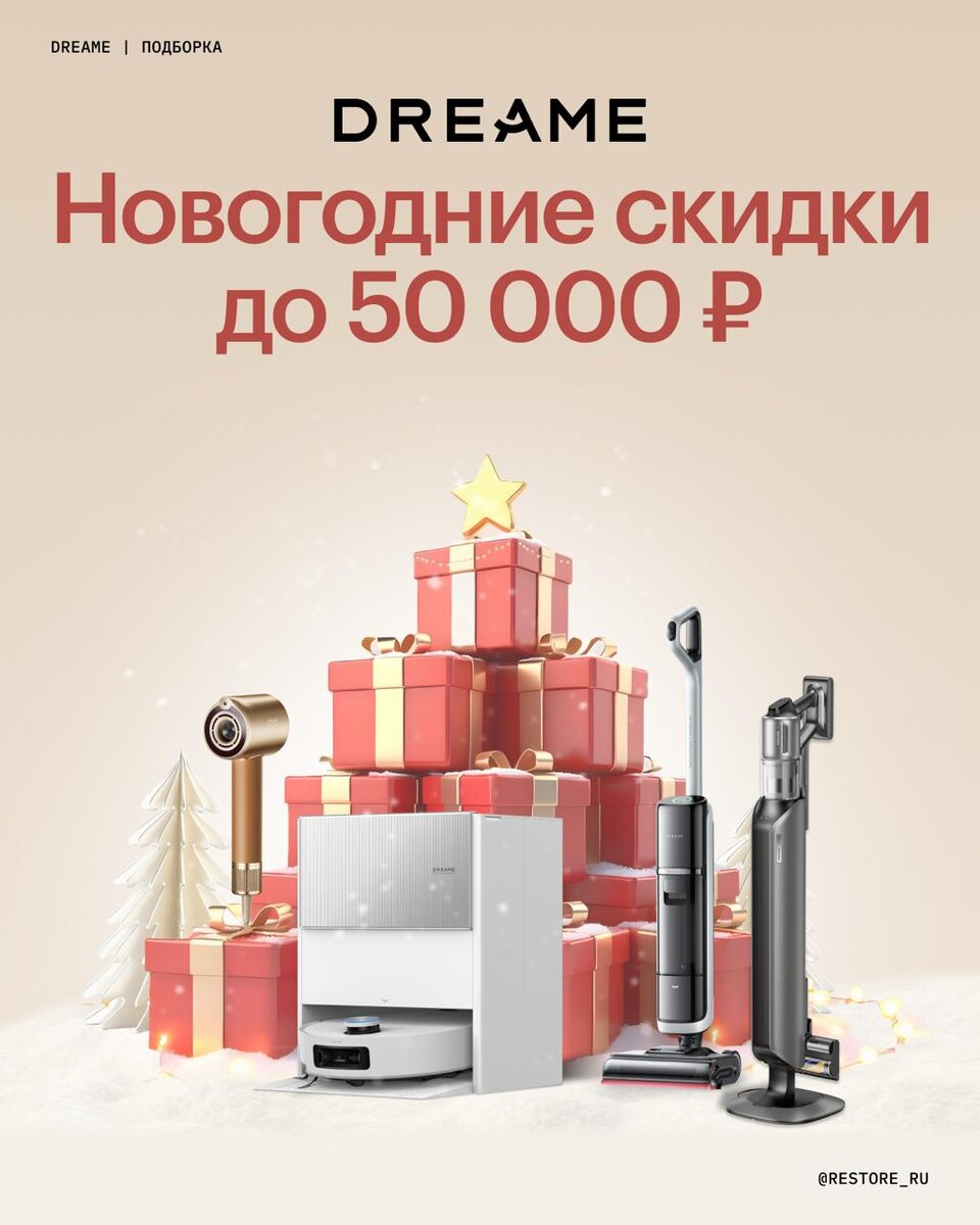 🤍 Экосистема Dreame позаботится о рутине: ✨Dreame PM20 можно использовать одновременно в качестве очистителя воздуха и вентилятора. ✨Dreame X50 Ultra Complete со станцией самоочистки позаботится о генеральной уборке, а Dreame H12S подойдет для поддерживающей уборки дома. ✨Стайлер Dreame AirStyle позаботится об идеальной укладке для всех типов волос. Подарите себе комфорт, который ощущается каждый день вместе с Dreame. Приобретая технику Dreame в restore: вы получаете выгоду до 50 000 рублей💜 Оформить заказ онлайн помогут наши специалисты по телефону: 8 (495) 502-19-44, в чате поддержки, в ВК, в MAX или на сайте 👋