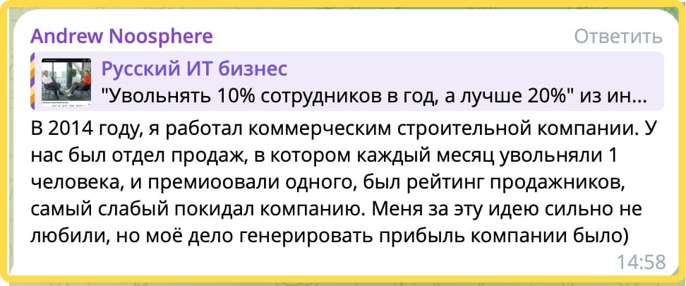 И у них конкуренция не только внутри каждого отдела, а еще между отделами. Растут. Плохих увольняют, хороших премируют. У нас такого нет, это минус. Я не шучу, надо уметь активно продавать услуги. Но не получается :( сделать отдел... Не шучу, только за обедом обсуждали, что вообще хреново умеем продавать (был диспут как двигать clickfraud.ru). Русский ИТ бизнес