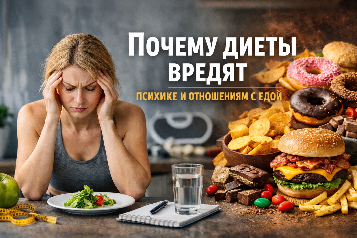 В современном мире фитнеса и здорового образа жизни диеты часто преподносятся как быстрый и эффективный способ добиться идеальной фигуры. Реклама обещает минус 10 кг за месяц, плоский живот и вечную мотивацию. Но за яркими обещаниями скрывается обратная сторона: многочисленные исследования показывают, что жёсткие диеты не только не работают в долгосрочной перспективе, но и наносят серьёзный вред психическому здоровью и отношениям с едой.