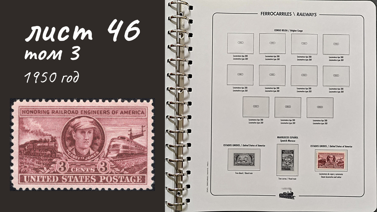 14. Соединенные Штаты Америки, 1950 год, № 611. Джон Лютер Джонс по прозвищу Ке́йси (1864-1900) — машинист локомотива, паровоз 1900 года и тепловоз 1950 года. В галерее конверт первого дня (нажмите правую стрелку).