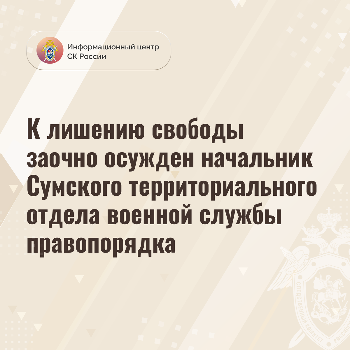 К лишению свободы заочно осужден начальник Сумского территориального отдела военной службы правопорядка