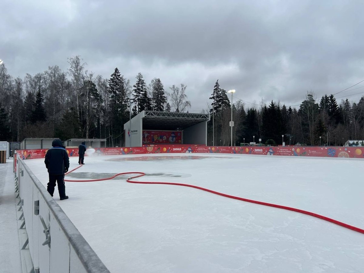 В настоящее время проводятся работы по проливу катка для его дальнейшей полировки и ледяного покрова. Также подготовлено брендирование «Зима в Подмосковье», которое планируется к установке. © Администрация Краснознаменска t.me/krasnoznamensk_news