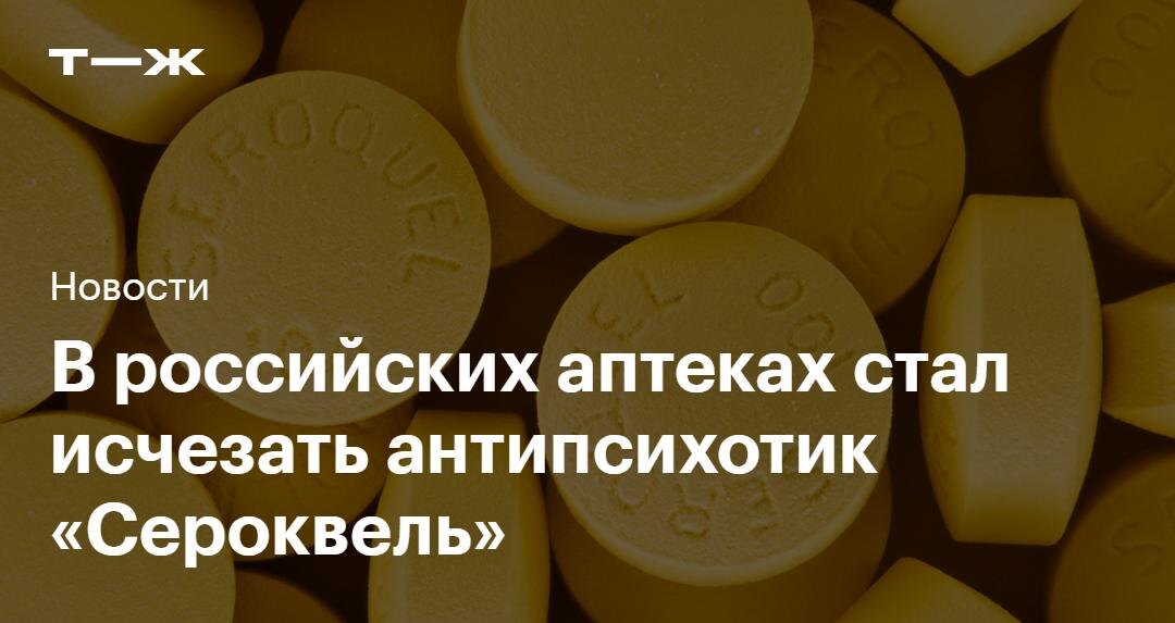» Об этом сообщает «Коммерсант» со ссылкой на данные аптек. «Сероквель» — торговое название нейролептика кветиапина. Его часто назначают для лечения шизофрении, биполярного расстройства, психозов и некоторых других психических заболеваний. Из продажи пропали самые востребованные дозировки: 25 мг и 100 мг. Таблетки по 200 мг пока найти можно только в отдельных аптеках, но и их осталось немного. Это не самая хорошая новость — аналогов некоторых форм кветиапина в России практически нет. Вот что известно на данный момент: https://t-j.ru/z-tg/seroquel-in-russia/
