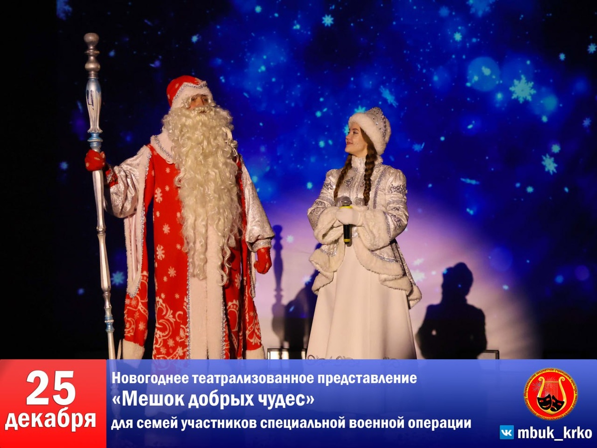✨🎄 ❄️ На этот раз новогоднее театрализованное представление «Мешок добрых чудес» показали семьям участников специальной военной операции. 👏 Это мероприятие стало не только ярким новогодним событием, но и важным жестом поддержки, ведь в нынешнее непростое время особенно ценно объединяться и проявлять заботу о семьях тех, кто сейчас выполняет свой долг. ❄️ Дети и их родители встретились с крошками феями, которые поделились чудесными историями, а #ДедМороз, #Снегурочка и сказочные герои пригласили всех присутствующих в интерактивную новогоднюю программу, наполненную играми, песнями и смехом. ✨ Именно в самые суровые времена вера в волшебство и сказку помогает найти опору, сохранить тепло в душе и дать силы двигаться дальше, напоминая о незыблемости добра и надежды. #Мешокдобрыхчудес #Культураокруга #Бытьближе #Спешитеделатьдобро
