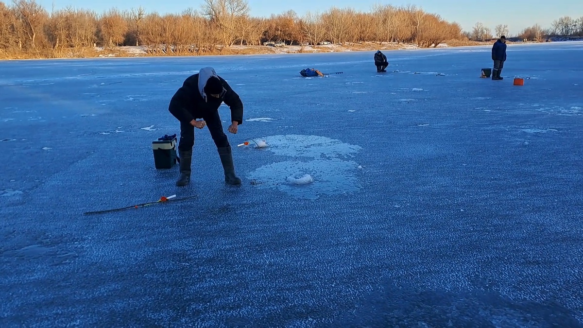 В первую очередь, обговорим опасность выхода на лёд при недостаточной его толщине. Минимальная толщина льда составляет 10 см., для безопасного нахождения на льду. А, при скоплении рыбаков в месте лова, эта цифра значительно выше.