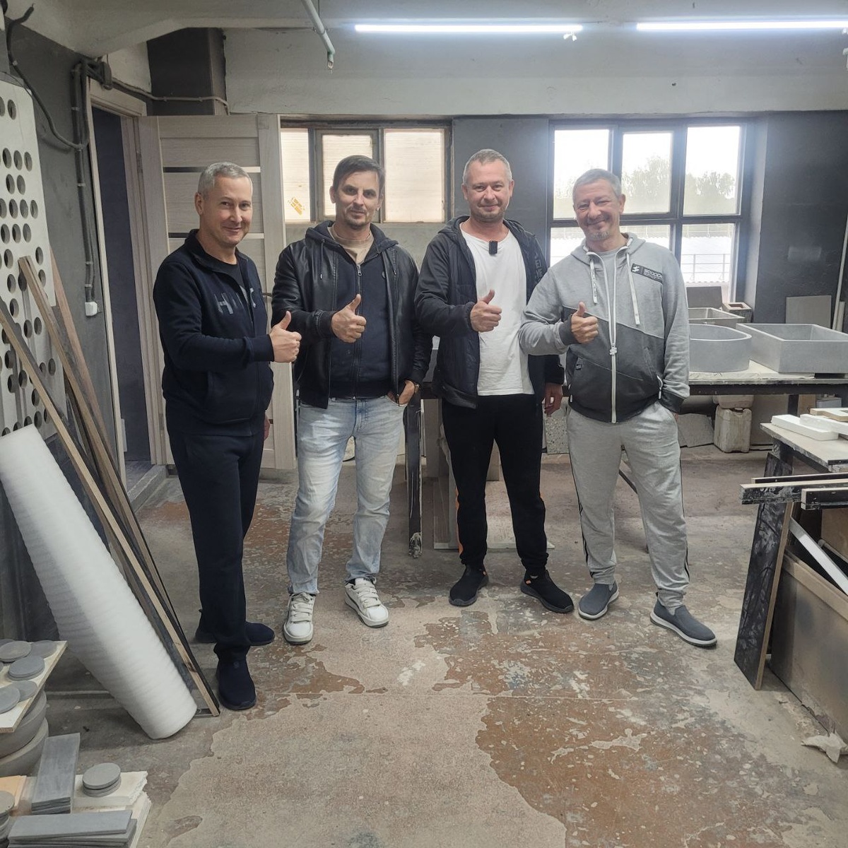 Назрел пост. Вчера снова писали — на этот раз из Армении. Человек уже занимается тротуарной плиткой и хочет добавить в производство МАФы и раковины. Вопрос логичный, запрос понятный — поэтому решила написать тут, сразу для всех. Пару месяцев назад к нам приезжали ребята из Алушты. Они, скорее всего, здесь — Сергей, привет 🤗 Фото прилагаю, если вдруг будете против — напишите, удалю без проблем. Обучение у них было полностью под ключ: изделия, фасадные элементы, запуск производства, комплектующие, подбор оборудования прямо на нашем производстве. И важный момент — мы не «показали один раз и удачи». Мы реально прошли путь вместе, плюс после обучения даём год сопровождения. С вопросами, корректировками, разбором ошибок — вы не остаетесь одни. Теперь коротко и по делу — что нужно для производства. Для полноценной работы с фасадами и изделиями из бетона нужна площадь минимум от 300 м²: зона замеса, формы, пост заливки, сушка и хранение. Очень желательно, чтобы была прилегающая территори