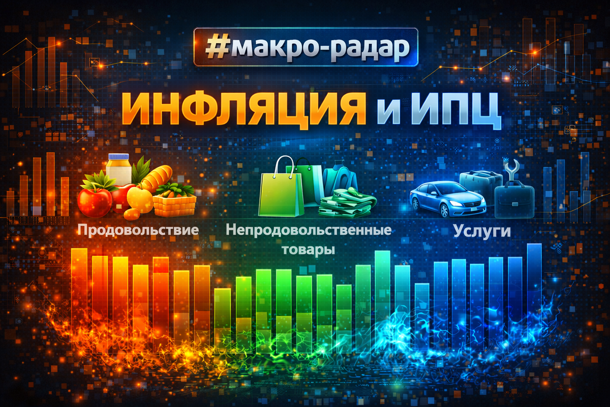 Индекс потребительских цен (ИПЦ) - это метрика, которая измеряет изменение цен в потребительской корзине, когда в новостях говорят про инфляцию, то обычно имеют в виду темп роста ИПЦ. В этой заметке я разбираю не инфляцию вообще, а то, из каких крупных компонентов складывается изменение ИПЦ: продовольствие, непродовольственные товары и услуги. Один и тот же ИПЦ за месяц может получаться из совершенно разных комбинаций роста цен по группам. Но у нас в новостях это будет выглядеть одинаково - ИПЦ +0,5% м/м. Я взял помесячные значения из выпусков Банка России "Динамика потребительских цен" за 2023-2025 (в 2025 году остановился на октябре) и разложил месячное изменение ИПЦ на 3 крупные группы: Чтобы переводить рост цен в группе в сколько пунктов она дала в общий ИПЦ, нужны веса корзины, я использовал веса 2025 года ко всем периодам 2023-2025, чтобы сравнение было в одной системе координат: