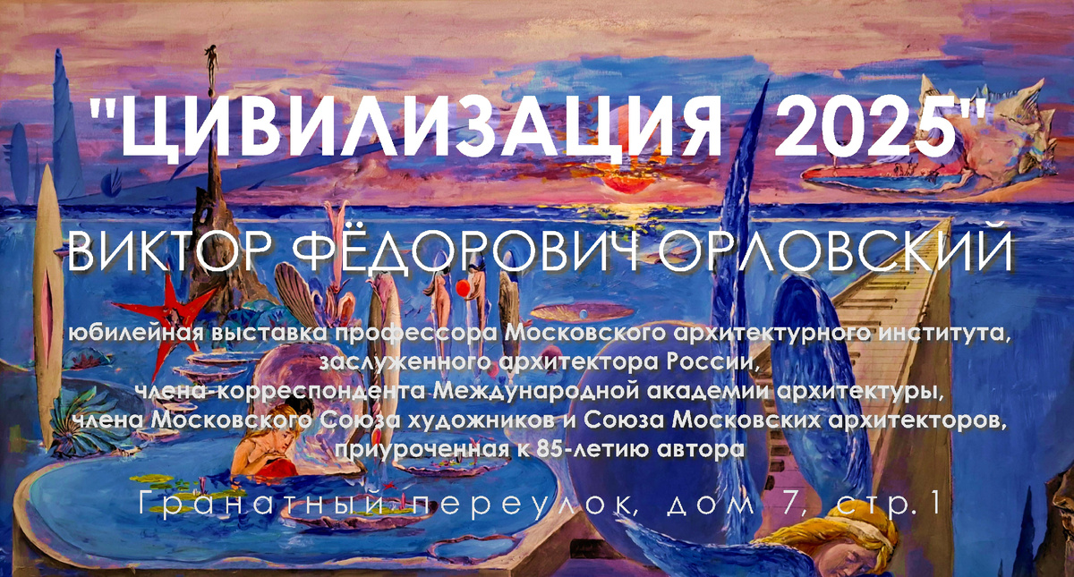 «Цивилизация 2025» - юбилейная выставка профессора Московского архитектурного института, заслуженного архитектора России, члена-корреспондента Международной академии архитектуры, члена московского Союза художников и Союза московских архитекторов, приуроченная к 85-летию автора.