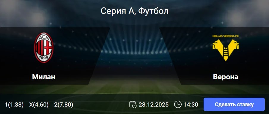 «Верона», несмотря на статус аутсайдера, демонстрирует неуступчивость в обороне на выезде. За 21 предыдущий гостевой матч чемпионата команда лишь дважды пропустила более двух голов. Более того, в двух последних очных встречах на «Сан-Сиро» веронцы уступили, пропустив лишь по одному мячу. Учитывая организованную игру гостей в защите и сдержанную атакующую модель хозяев, наиболее вероятным исходом видится сценарий, при котором «Милан» не сможет продемонстрировать высокую результативность. 🎯 ТМ (3) 🎲 кф (1.54) 👉 СДЕЛАТЬ СТАВКУ В БК WINLINE 🎁 ФРИБЕТ WINLINE - 3000₽ (промокод: BETWIN) 👉 СМОТРЕТЬ ПРОГНОЗ 👇 Подпишись на нас 🧿 ВКонтакте ✈️ Телеграм 📎 Сайт