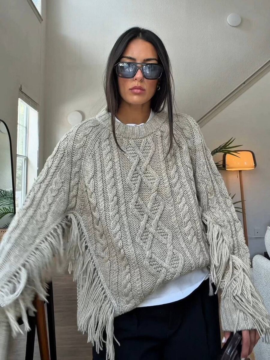 Еще один зимний тренд в стиле бохо — трикотаж с бахромой.
