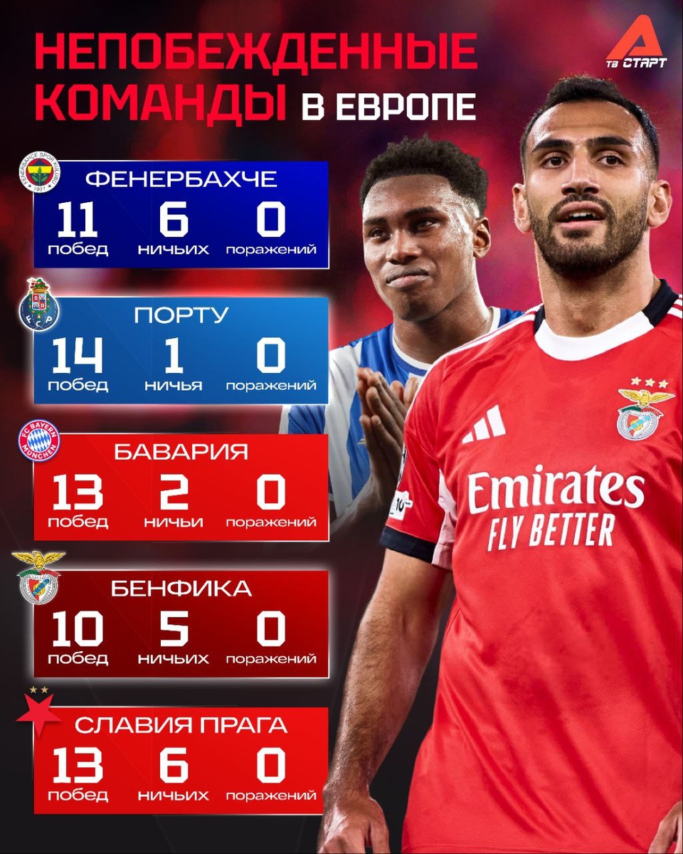 Так 2026-й могут начать пять команд. Причем Жозе Моуринью поработал с двумя из них. Прошел три тура с «Фенером», а с шестого зашел в Примейру. В рамках национальных чемпионатов переиграть Особенного пока не удалось никому. Однако в 2025-м ему еще нужно не уступить «Браге», а Франческо Фариоли в свою очередь ждет АВС. «Бавария» уверенно идёт к чемпионству и вполне может пройти всю Бундеслигу без поражений. В топ также попала миролюбивая «Славия». Запас побед обеспечил ей отрыв от «Спарты» в семь очков. Кто больше всего впечатлил вас в 2025-м? 🤔 🛒 Наше приложение в Google Play 💙 Наше приложение в RuStore 🛒 Наше приложение в App Store