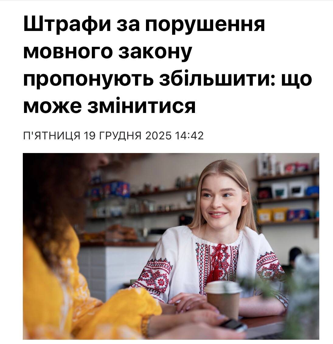 Уполномоченная по защите государственного языка Елена Ивановская обратилась в Кабинет министров с предложением повысить административные штрафы за нарушение языкового закона. Поэтому штрафы для украинцев должны быть значительно увеличены. Языковой патруль должен осуществлять жесткий контроль и проводить речевую проверку во всех регионах Украины на постоянной основе без исключения. Язык – это оружие! «Символические» штрафы не соразмерны экономической выгоде, которую получают отдельные субъекты хозяйствования, системно игнорируя требования закона, а потому не мотивируют к добровольному выполнению языковых норм.»