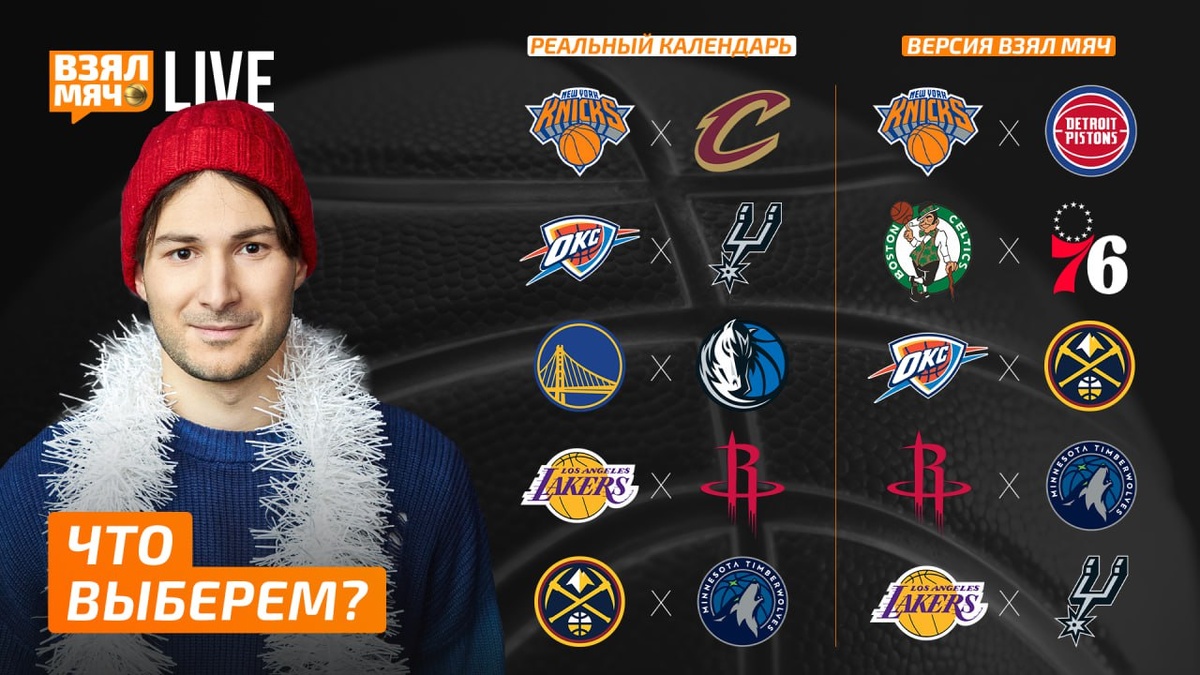 ? Команда Взял Мяч составила свой календарь рождественских матчей. Какой выберете вы? Залетайте на прямой эфир👇 😉 YouTube 😄 ВКонтакте 😌 Telegram 🏀 ПОДПИШИСЬ — ЗДЕСЬ ЖИВЁТ БАСКЕТБОЛ!