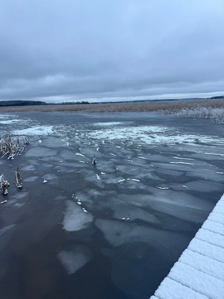 🚩 Озеро Отрадное, Приозерский район Здесь лёд снова не успел встать за пару морозных дней, теперь снова всё тает 🧭 Координаты локации: 60.828895, 30.338560