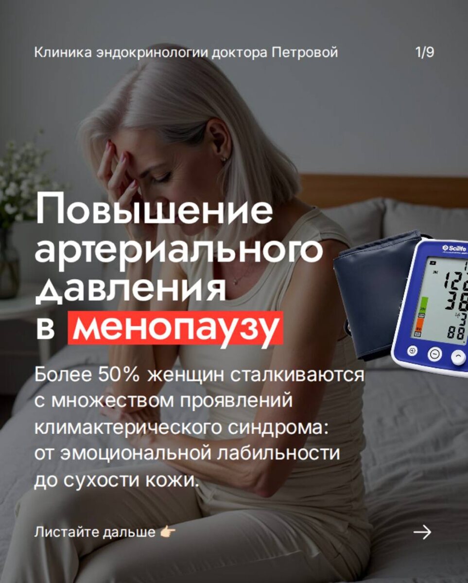 ? 🔹Период перименопаузы и менопаузы — это время значительных гормональных перестроек, которые затрагивают не только репродуктивную систему, но и сердечно-сосудистую. 👉Одной из самых частых жалоб, которые я слышу в кабинете в этот период, является повышение артериального давления (АД). ПОДРОБНЕЕ О ПОВЫШЕНИИ АРТЕРИАЛЬНОГО ДАВЛЕНИЯ В МЕНОПАУЗУ читайте в картинках