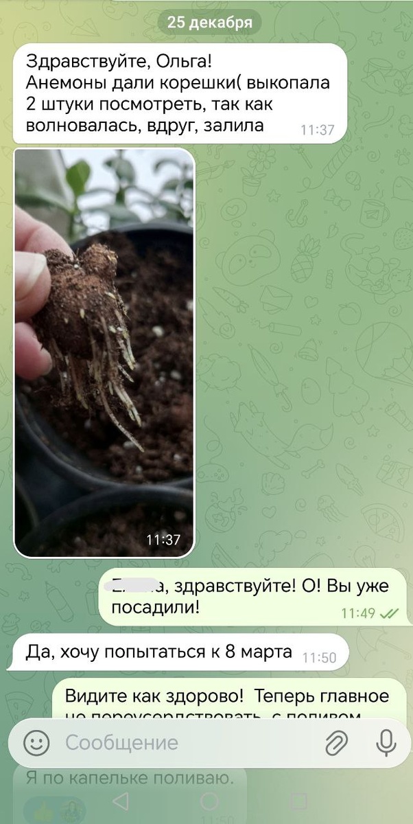 Наши покупатели делятся своими успехами выращивания. Уже сажают анемоны, кстати, весьма непростую культуру. А я всегда помогаю, отвечаю на возникающие вопросы.