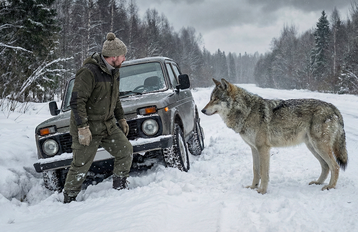 Федор бросил второй кусок. На этот раз волк взял его спокойнее. Он снова посмотрел на человека. Рычание стихло. Волк снова опустил голову на лапы, но теперь он лежал чуть ближе к водительской двери, словно признавая: здесь источник не только тепла, но и еды.