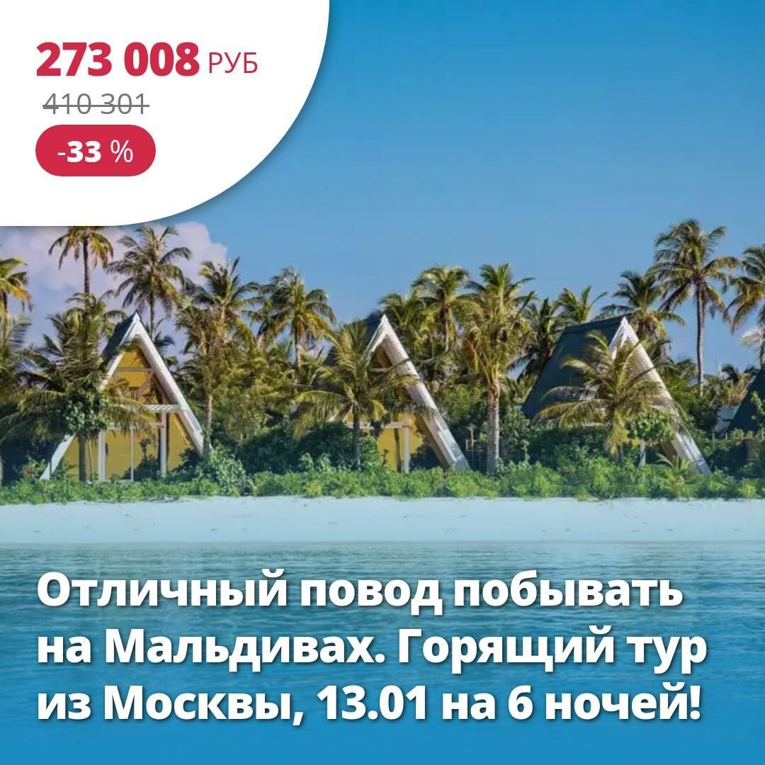 ❤ Отличный повод побывать на Мальдивах. Горящий тур из Москвы, 13.01 на 6 ночей! 🏠 5*, Мальдивы из Москвы 13 января на 6 ночей, Все Включено. OAGA ART RESORT 5* Отель на атолле Северный Мале. Виллы с собственными бассейнами, бар со множеством вкусных закусок и напитков, разнообразие спа-программ для восстановления душевного равновесия, творческие занятия, йога и медитации, фирменные блюда в ресторане. Летим в теплые края, обгоняя перелетных птиц! Подробнее здесь: https://starttime.ru/search-tours?tvcard=7q0ng2 Лучшие туры https://starttime.ru/search-tours #СтартТайм #ЛучшийТур