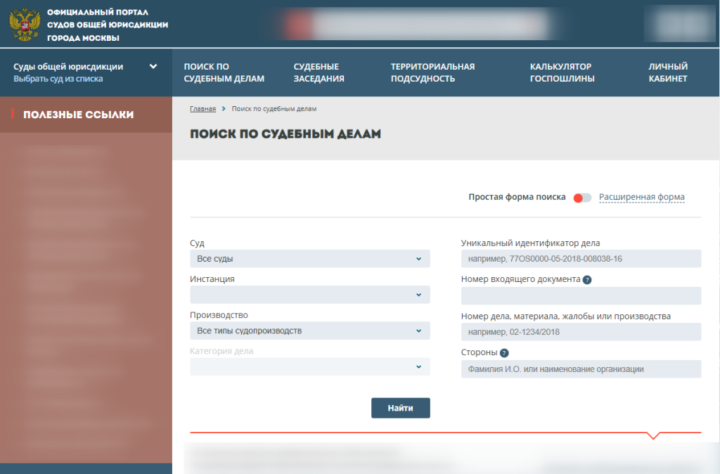 Процесс поиска унифицирован для большинства судов страны, но есть и важные нюансы. Действуйте по шагам.