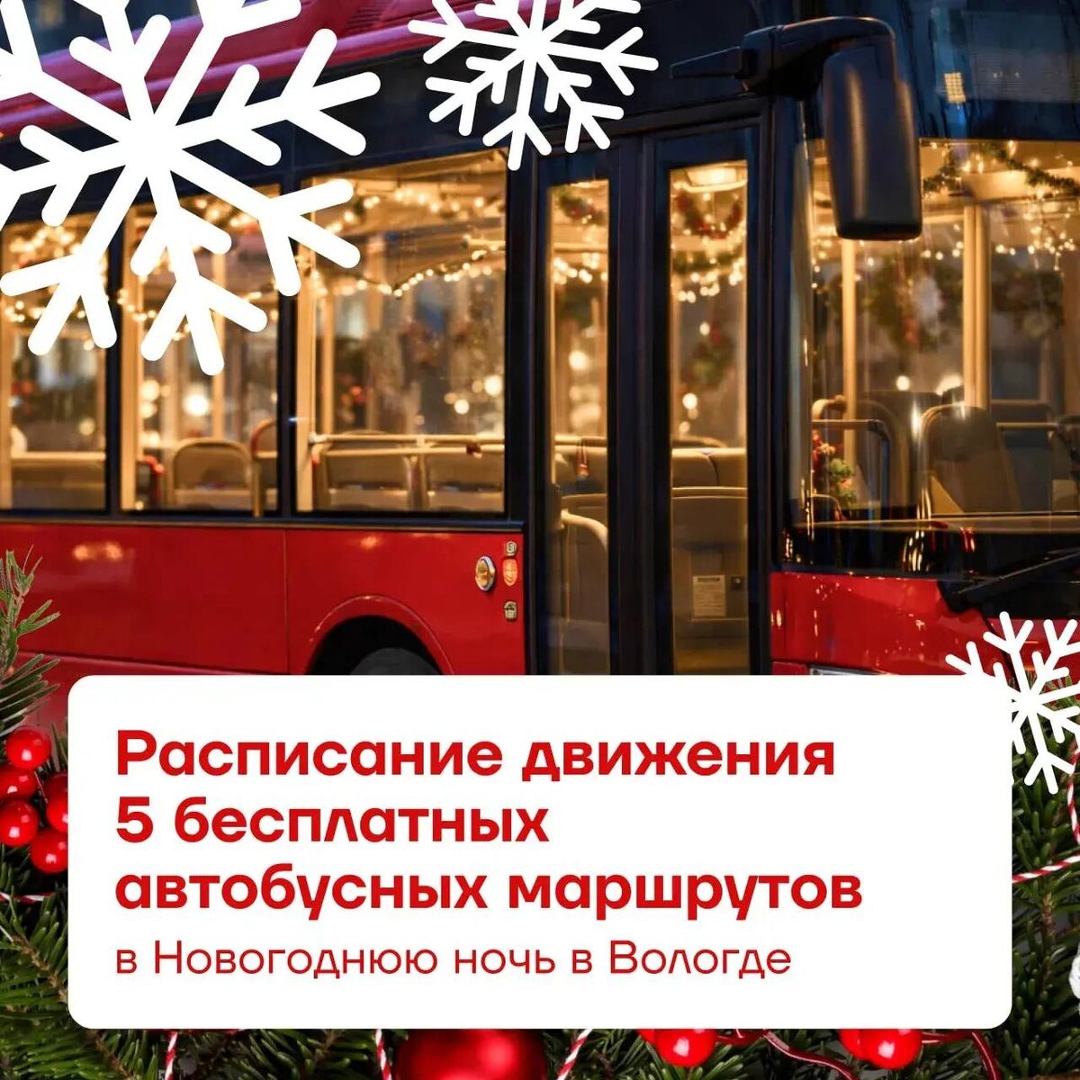 😁 Бесплатные автобусы будут курсировать в Вологде в новогоднюю ночь по пяти направлениям