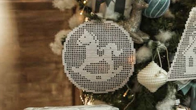 В первом случае это кружочек, в котором изображена, связана лошадка-качалка. Такой вариант можно оформить в шарик, в пинкип, а можно просто заблокировать и повесить на ёлку.