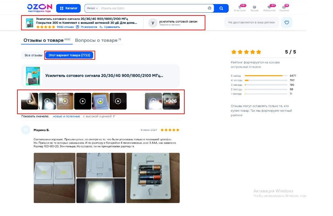 Поддержка как всегда молчит История из категории «электроника / усилители связи»(но может повторяться и в любой другой). Что происходит на Ozon по факту: ✔ конкуренты массово накручивают отзывы и рейтинг 5.0; ✔ делают это не точечно, а промышленно; ✔ используют дыры в механике маркетплейса, которые всем давно известны. Как именно крутят: 1. Склейка карточек К карточке с технически сложным товаром приклеивают: ✔ резиновых уточек, ✔ обложки для паспорта, ✔ сувениры. С тысячами старых отзывов. Потом меняют фото, название и категорию — и вуаля: усилитель связи с рейтингом 5.0 и 9000+ отзывов. 2. Самовыкупы через realFBS Создаются отдельные карточки с ценой ~20 ₽. С фейковых аккаунтов оформляются заказы, доставки по факту нет. Отзывы есть. Заказов — копейки. Карточку потом прячут и подвешивают к основному товару. Цифры выглядят абсурдно: ✔ отзывов — 9 000+, ✔ заказов — меньше 500. И это в топе выдачи. Самое интересное — что реально происходит со стороны площадки: ✔ обращени