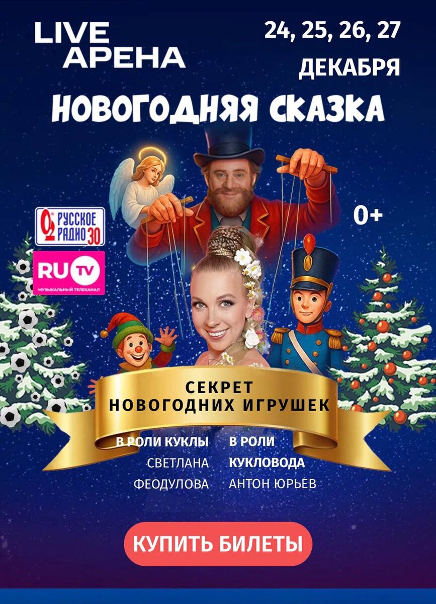 ₽. 26 и 27 декабря Готово новое представление, участвуют ведущие музыкальные и хоровые коллективы Москвы, в постановке использовано всё пространство зрительного зала, уникальные костюмы и номера с животными. На огромные мониторы идёт видео трансляция, если плохо видно детали. Рождественское представление в "LIVE Арена" (ОДИНЦОВО- Новоивановское) Организатор Светлана Феодулова, как в прошлом году. Год назад все были в восторге, глубокий православный духовный смысл раскрывался в самом конце спектакля! ПОСМОТРЕТЬ БИЛЕТЫ