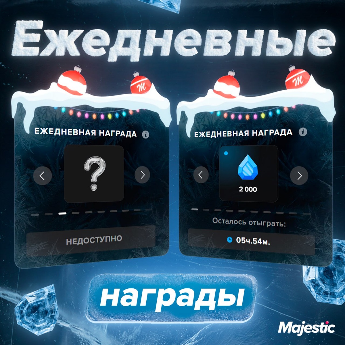 Зима любит тех, кто играет каждый день, а мы любим дарить подарки — и чем чаще вы играете, тем ценнее они становятся! 🧸 Забирайте призы в течение 10 дней в меню Зимнего ивента и не пропускайте ни одного, чтобы раньше всех добраться до самых крутых наград. ❤️ Majestic Role Play