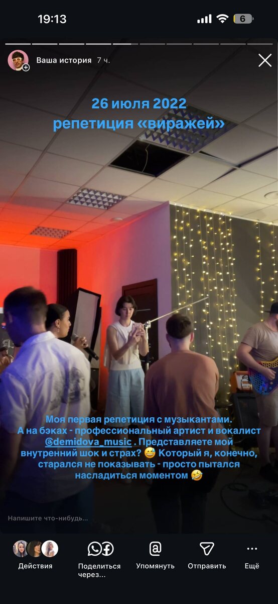 ». Рандом. Часть 2 1. Моя первая репетиция с ю музыкантами. А на бэках - профессиональный артист и вокалист Настя Демидова. Представляете мой внутренний шок и страх? Который я, конечно, старался не показывать - просто пытался насладиться моментом. 2/3. Зависаем на очередной студии, дурачимся. Пишем демки. Именно в этот период - 2022 год, благодаря музыке, я познакомился со своими, на сегодняшний день, близкими друзьями! 4. Стали приглашать выступить на разные камерные фестивали. Вот один из них. Это песня «МЕЧТА» мало ее кто знает, но есть один человек, который знает абсолютно все мои песни и поддерживает по сей день! Ксюня, безумно благодарен тебе, за поддержку и большую помощь на старте проекта и все что за кадром. обожаю тебя!! 5. Вот смотрю на эту фотографию - и каждому из вас я безумно благодарен за тот период в моей жизни. Вы очень мне помогли. Я нашёл дело, которым по-настоящему горю. Пусть сейчас мы уже другие и с кем-то из вас не общаемся, но для меня этот момент бесконечн