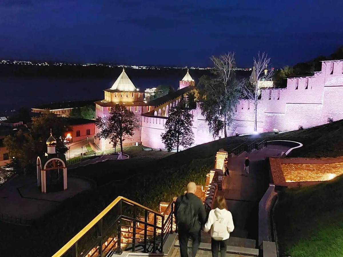 Уже подъезжая к центру, мы заметили величественную крепость, стоящую на высоком холме над Волгой и Окой. Сразу поняли — это и есть тот самый Нижегородский кремль, о котором столько слышали! Стоя у главных ворот, мы почувствовали трепет и восхищение. Перед нами возвышалась мощная стена, построенная ещё в начале XVI века. Нам показалось, что мы попали в настоящую сказку — настолько впечатляюще выглядят эти древние камни, пропитанные историей и легендами. Первое, что бросилось в глаза — это уникальная архитектура кремля. Формы стен образуют неправильный многоугольник, а длина их поражает — целых 2 километра! Каждая из тринадцати башен имеет своё имя и историю. Особенно запомнилась нам Коромысл