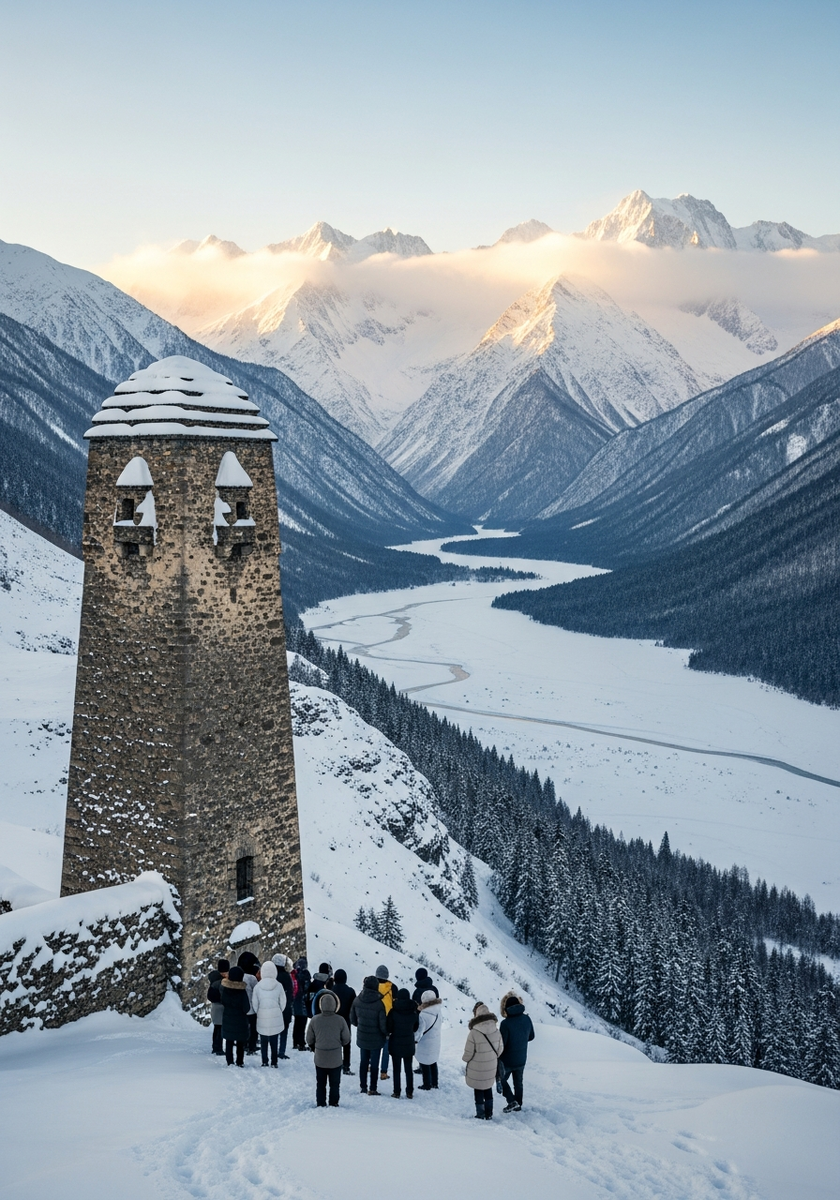 - Когда лучше всего посещать достопримечательности Ингушетии зимой? Оптимальное время — декабрь-февраль, когда зима мягкая, а горы покрыты снегом. Температура держится около -5-10°C.