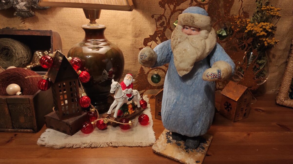 Рисовать я не умею, как впрочем и лепить, поэтому первые четыре раза мне пришлось закрашивать в персиковый румянец результаты моего творчества. И лишь на пятом заходе я осталась вполне удовлетворена взглядом голубых глаз Деда Мороза, больше издеваться над его лицом сегодня не буду.