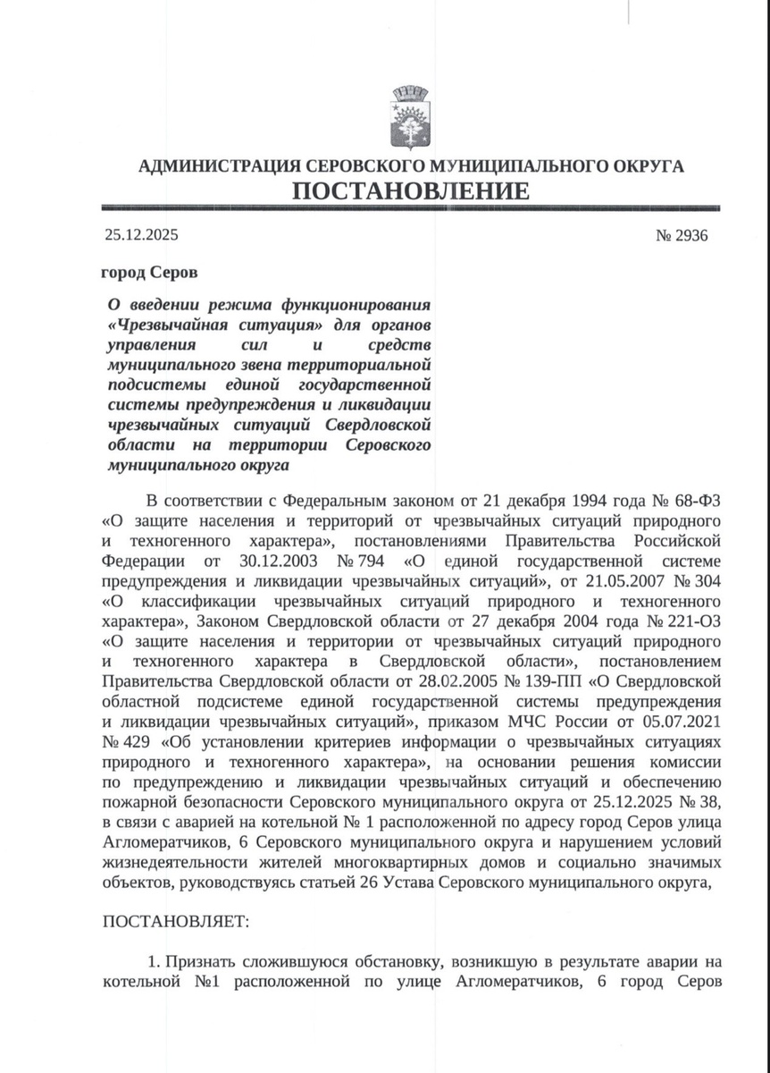 ❗️ В Серове объявлен режим ЧС и создана соответствующая комиссия
