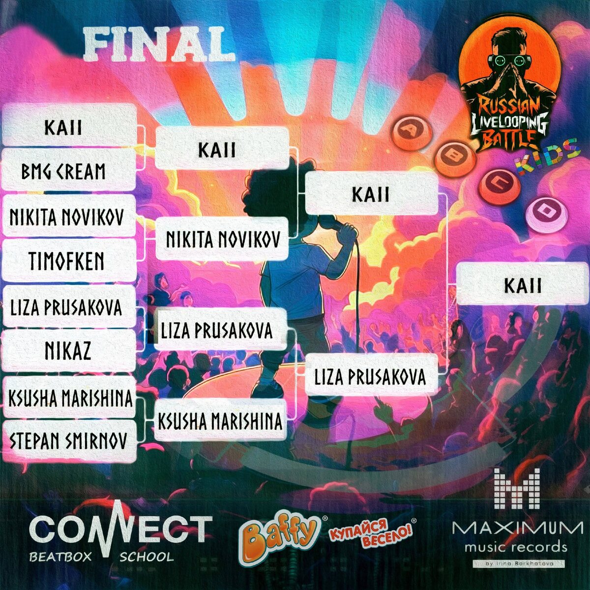 Дорогие участники, зрители и все те, кто следит за этим захватывающим событием!!! 🏆 По итогам противостояния, победителем Russian Livelooping Battle KIDS 2025 становится: 1 место - Kaii🥇🏆 2 место - Лиза Прусакова🥈 3 место - Никита Новиков🥉 4 место - Ксюша Марышина Наши поздравления и максимальный респект всем участникам 👏👏👏🔥🔥🔥 #лупстанция #loopstation #лупер #bbx #beatbox #битбокс #acapella #акапелла #livelooping #лайвлупинг #лайвлупингбатл #RLBKIDS #RussianLiveloopingBattle #connectschool #школабитбокса