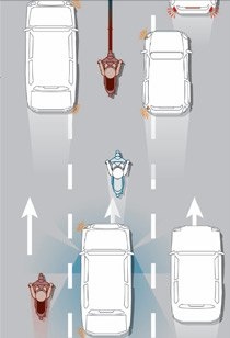 Старайтесь, чтобы вас не подрезали Вы едете спокойно по своей полосе. Вы внимательно наблюдаете за тем, что происходит впереди вас. Однако этого недостаточно! Внимательно следите за поведением окружающих вас машин, потому что они зачастую не соблюдают правило преимущественного движения, когда речь идет о мотоциклах. Если машина, движущаяся рядом с вами, намеревается обогнать другой мотоцикл (предположим, он движется между полос), велика вероятность того, что автомобиль вторгнется на вашу часть дороги и вы попадете в «мертвую» зону видимости для водителя. В такой ситуации вам необходимо заранее предугадать поведение водителя автомобиля и подать ему звуковой сигнал, чтобы он вас заметил и совершал планируемый маневр только тогда, когда появится такая возможность.