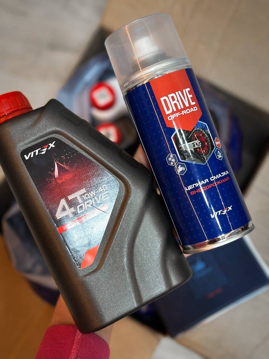 😍 Бренд Vitex прислал на тест целую коробку технических жидкостей для моей техники 🔥 Там и 2т и 4т масло и смазка цепи и масло для подвески и антифриз! Такие подарочки мы любим 💞 Скоро буду менять масло и на BSE Z10 и на квадрике Avantis, ждите новые ролики с заменой 💪🏻