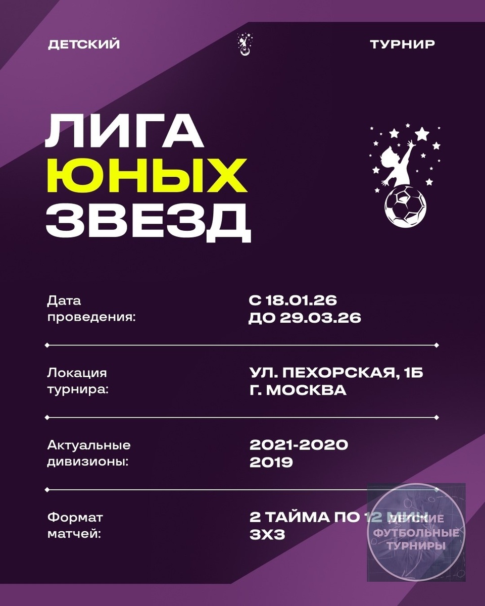! Приглашаем команды 2021-2020, 2019 г.р. принять участие в турнире. Не упустите шанс проявить свои таланты и завести новых друзей! Игры каждые выходные на новой арене в «Технополисе» Адрес: г. Москва, Пехорская 1Б Заявить команду по тел.: 89375364696 (Даниил) 89654371244 (Тимур) -— #ФутбольныйТурнирЯнварь2026 #ФутбольныйТурнирФевраль2026 #ФутбольныйТурнирМарт2026 #ФутбольныйТурнирМосква2026 #ФутбольныйТурнирМосква2019гр #ФутбольныйТурнирМосква2020гр #ФутбольныйТурнирМосква2021гр