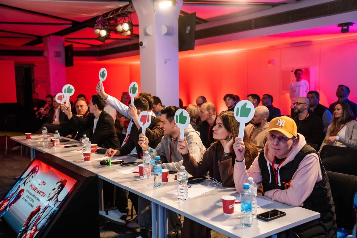 - Провели три инвест-баттла — революционный формат, где батлились не стартапы, как все привыкли, а эксперты: им предлагалось защищать разные инвестиционные направления. Получилось настоящее шоу. В первом баттле выиграл фондовый рынок, во втором одним из участников был цифровой аватар, а на третьем баттле аргументы приводились с помощью настоящего космического спутника и живой курицы.