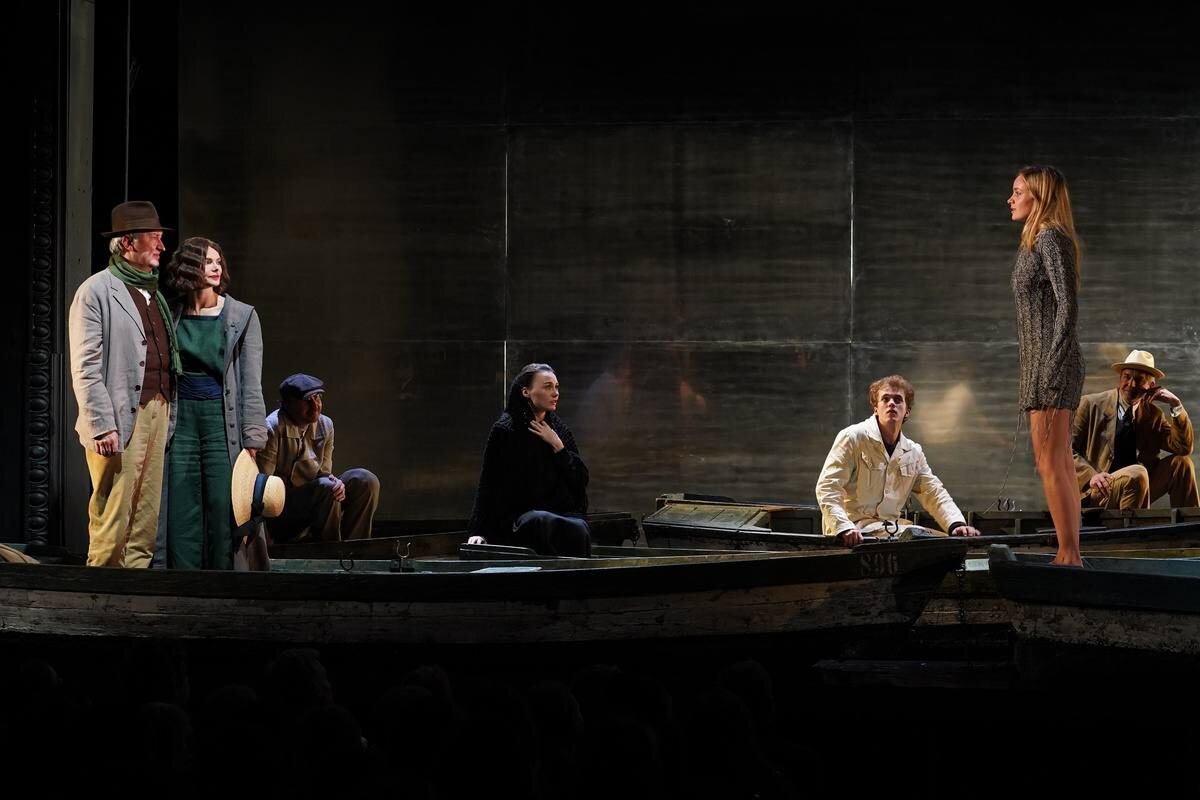 ) Режиссёр — Лев Додин В ролях: Елизавета Боярская, Евгений Зайфрид, Сергей Курышев, Анна Завтур, Полина Севастьянихина, Олег Рязанцев, Игорь Черневич. Марина Дмитревская: «И Аркадина любит Тригорина — совсем как Маша Вершинина: "Я люблю, люблю, люблю этого человека!"… Ещё в первом акте, обнимая его, она объясняет себя сыну, произнося эту фразу Маши Прозоровой, а во втором действии читает весь монолог из третьего акта этой, другой, пьесы. С одной стороны, Аркадина вроде как проигрывает кусок спектакля, с которым её так прекрасно принимали в Харькове, с другой — это про любовь самой Ирины Николаевны, с третьей — оммаж "Трём сёстрам", где именно Елизавета Боярская играет Машу. Теперь она Аркадина, и спектакль во многом о ней, об этой любви, о её страдании и муке, превращающей каботинствующую, красивую, уверенную, сияющую красной помадной улыбкой даму — в бледную, ненакрашенную, несчастливую, ничего не простившую Тригорину, но любящую его женщину. А главное (или не главное?) — очень н