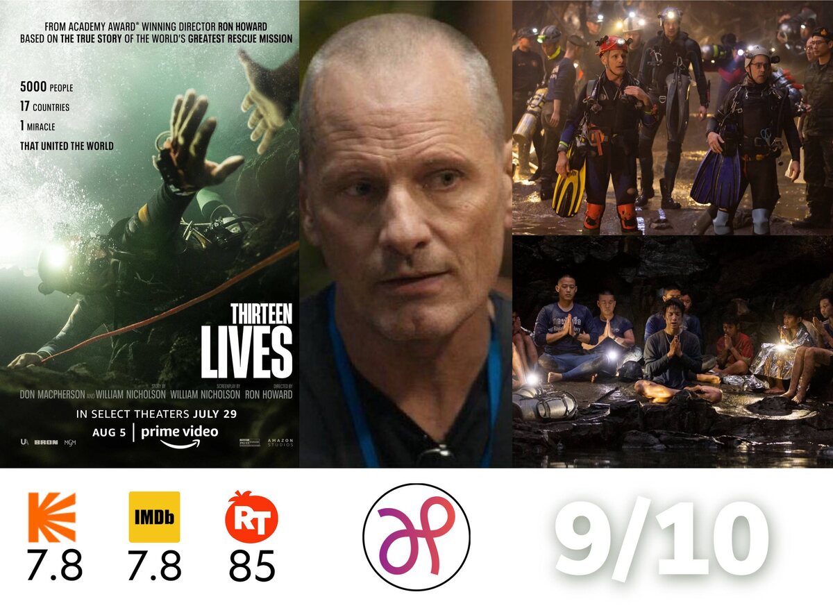 13 жизней (2022) Эталонная драма Рона Ховарда, основанная на реальной истории спасения, которая по-новому раскрыла скромные статьи в интернете и сюжеты с ОРТ. В затопленной пещере Тайланда оказались двенадцать мальчиков и тренер их футбольной команды — весь мир откликнулся, чтобы выручить бедолаг из западни. Мощнейшее, дотошное и жизнеутверждающее кино о силе воли, сплоченности и отважности. ▶️ Трейлер