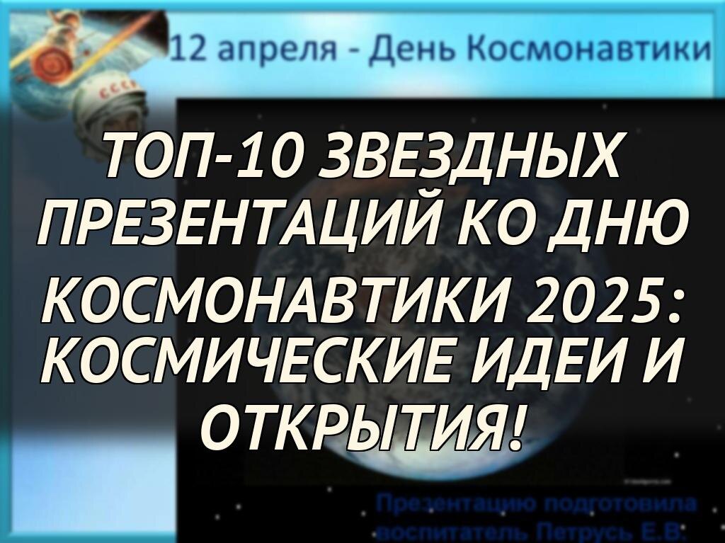 В этой статье мы собрали ТОП-10 лучших презентаций, посвященных Дню Космонавтики, отобранных по качеству содержания, креативности дизайна и эффективности передачи информации. Эти работы помогут преподавателям, студентам и энтузиастам космоса найти вдохновение для своих проектов, провести яркие мероприятия или просто насладиться визуальными историями о безграничных возможностях человеческого разума.