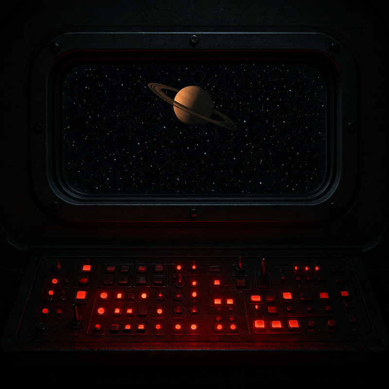 Станция, действительно, уже виднелась в иллюминаторе — пока что как крошечный металлический пончик, едва различимый на фоне Сатурна.